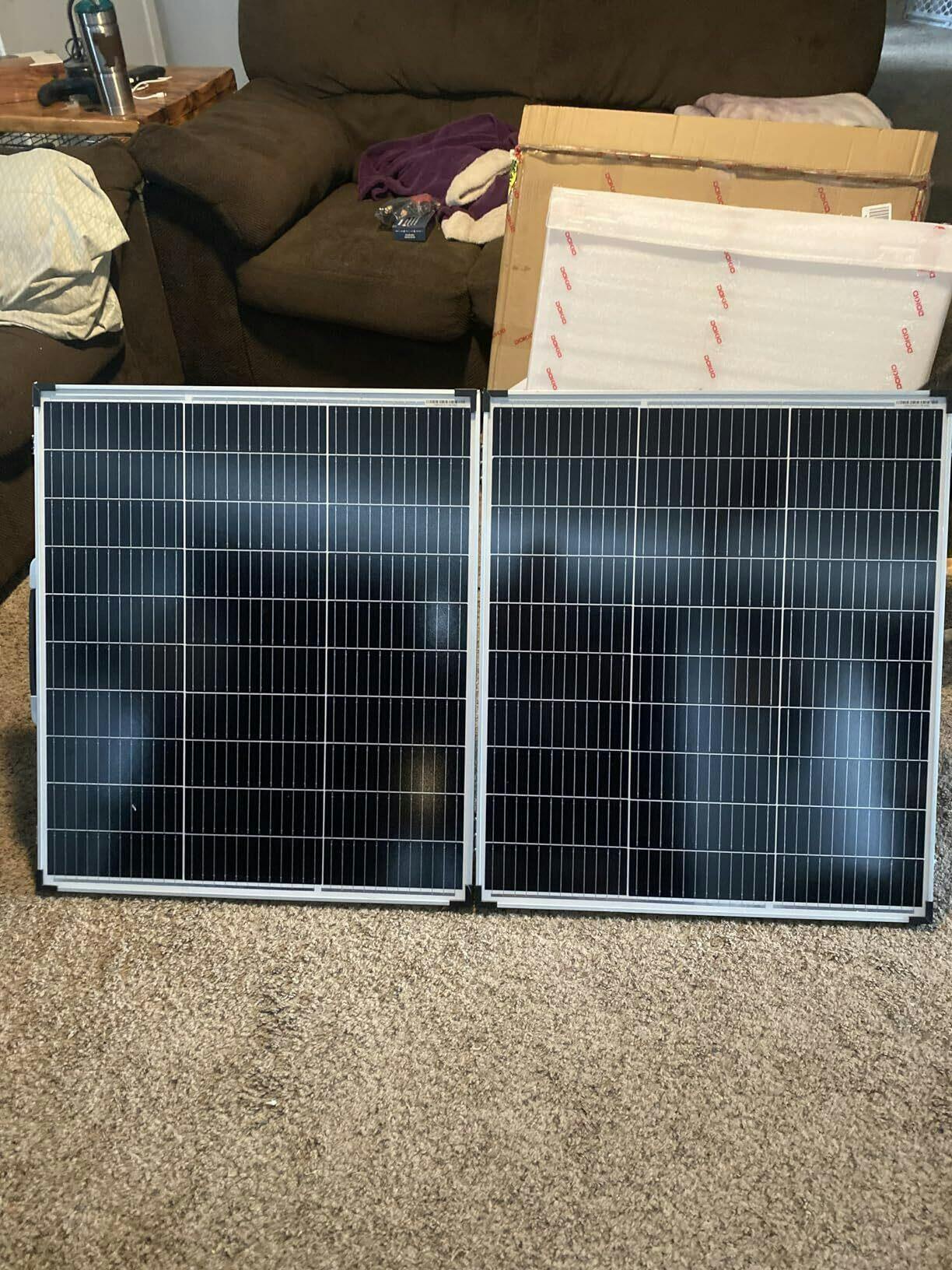 Dokio 100W Tragbares, faltbares Solarpanel-Kit für Camping/Wohnmobil/Autobatterie/Zuhause