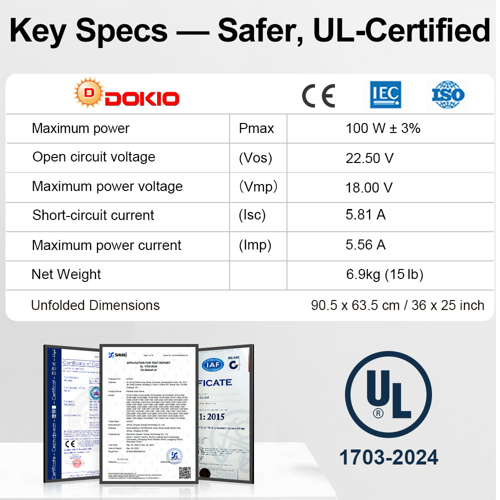 100W DOKIO Portable Solar Panel × 1